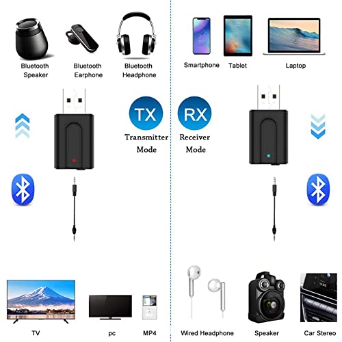 ILamourCar Adattatore Bluetooth 5.0 USB, 2 in 1 Trasmettitore e Ricevitore con 3.5mm AUX Wireless Bluetooth Adattatore, Plug And Play, Compatibile con Cuffie/Altoparlanti/TV/PC/Telefoni/Autoradio