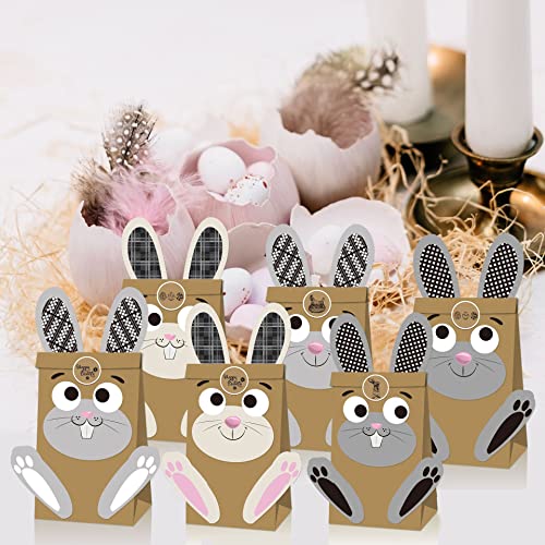 【Set di sacchetti regalo di pasqua fai-da-te】Ricevi 12 sacchetti regalo fai-da-te, 24 pezzi cartoncino di animali fai da te, 2 fogli (40 pezzi) di colla a punti, 2 fogli (18 pezzi) adesivi rotondi e 4 fogli adesivi per bambini sul tema dei coniglietti.