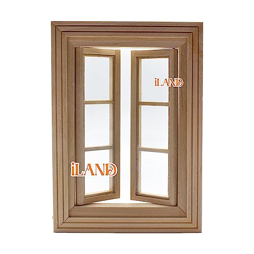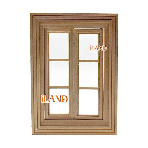 ILAND Accessori per la casa delle bambole in legno, finestra di legno in scala 1/12 (classica finestra di espressione)