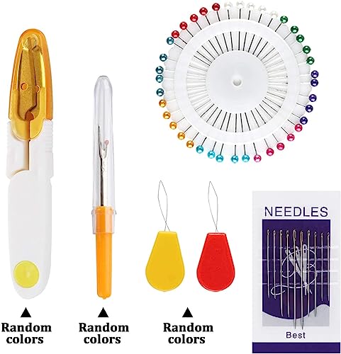 Set completo di 116 pezzi: 100 tipi di fili per cucire, 10 aghi per cucire, 2 infilaaghi, 1 forbice per filati, 1 spogliarellista, 1 set di aghi per perle, 1 scatola per riporre oggetti. Un ottimo set per principianti e amanti del cucito.