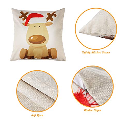 Ilauke 4 Pack Federe Cuscini Divano, Lino Biancheria Fodere Cuscino Divano con Invisible Zipper, Federe Cuscini Natalizi 45X45 cm, Adatto per Soggiorno Sedia Letto e Natale Decorazioni Casa