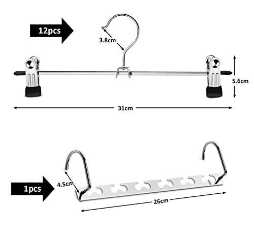 Ilauke 12 Grucce Pantaloni, 31cm Lungo Grucce per Pantaloni con Pinze Antiscivolo Regolabili per Pantaloni, Essere Utilizzato per Appendini per Pantaloni Grucce Gonne Grucce Armadio Hanger