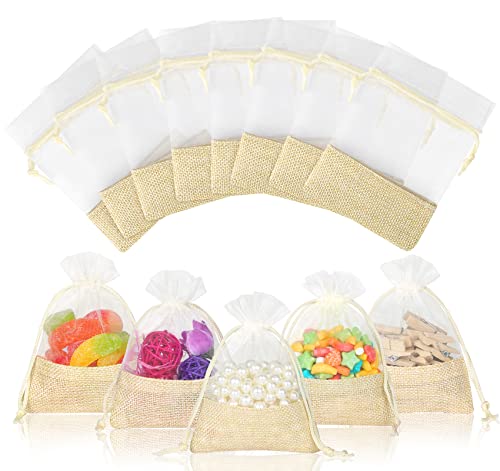 Ilauke Sacchetti in Organza, 30 Pezzi Buste in Organza con Tela di Juta 9 x 12 cm Sacchetti Regalo in Organza Gioielli Sacchetto per Fai da Te Mestiere Festa Matrimonio Bomboniere Gioielli Caramella