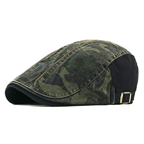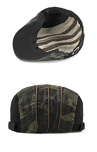 Ileibmaoz Berretto Cappelli Berretto Mimetico Uomo Donna Berretto Strillone in Cotone Lavato A Spina di Pesce Cappello Piatto Edera Regolabile-Black_Adjutable_55To60Cm