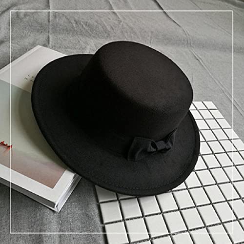 Ileibmaoz Fedora Trilby Cappello Feltro Cappello A Cilindro Piatto con Fiocco retrò Nastro Coppia Uomini E Donne Cappello da Gentiluomo Cappello Caldo A Tesa Piatta Larga-Nero_(56-58Cm)