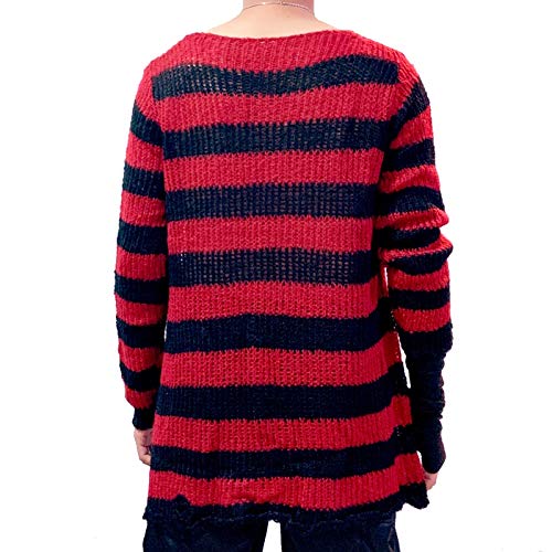 Ileibmaoz Maglione Pullover Punk Gothic Cool Maglione Lungo A Righe Maschili Uomo Stretch Pullover Sottile Maglioni Rotti Scava Fuori La Fessura Spring Knittop Maglioni OneSize Blackandgold