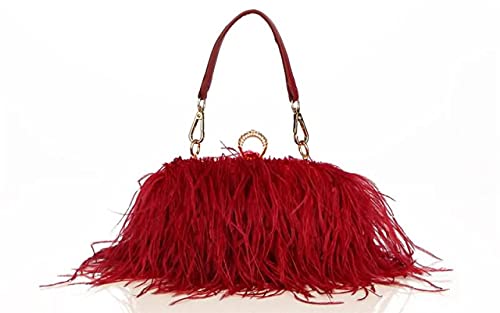 Ileibmaoz Pochette Donna Portafoglio con Piume Pochette da Donna Pochette con Anelli per Nocche Borsa da Sera per Cena Borsa A Catena Rossa