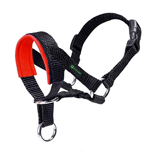 ILEPARK Collare per Testa di Cane con Tessuto Imbottito, Cavezza da Testa per Cane, Regolabile, Strumento di addestramento. (M,Rosso)