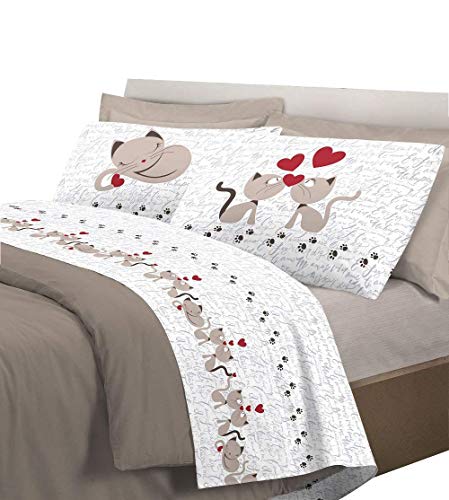 IlGruppone Completo Letto Lenzuola, Stampa Digitale Gattini 100% Cotone, Made in Italy - Beige - Matrimoniale