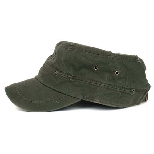 Ililily Distressed Cotton Cadet cap Strap Army Style Hat, Khaki