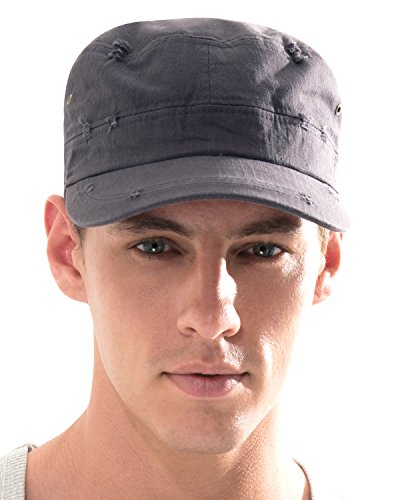 Ililily Distressed Cotton Cadet cap Strap Army Style Hat