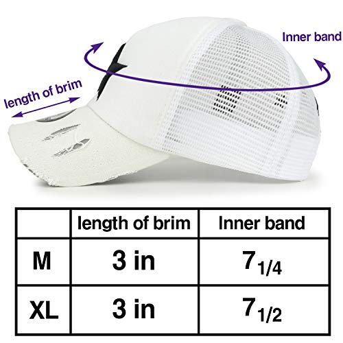 Ililily Star Embroidery Black White Trucker Hat Cotton Baseball cap (Medium, White Mesh)