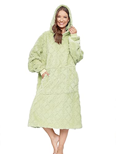 Ililmmoe Coperta oversize Sherpa indossabile con cappuccio per donne e uomini lunga e confortevole coperta sherpa Shaggy Pullover peluche calda coperta accogliente taglia unica Verde ...