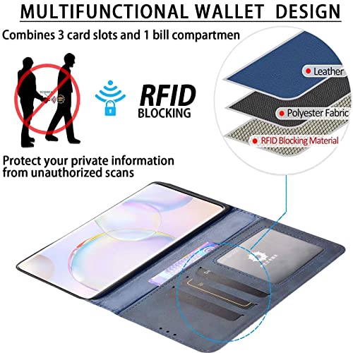 ILING Leather Folio Cover per TCL 30 SE/TCL 305/TCL 306, Custodia in Retr?Pelle Magnetico Premium PU/TPU Couro FILP Case con Supporto/Porta Carte a Portafoglio (Blu)