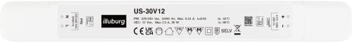 Illuburg Trasformatore LED 12V 30W Sottile Senza Sfarfallio per Strisce Mobili LED Alimentatore Driver