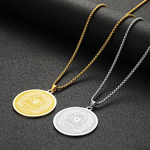 Illuminati Collane per Uomini Donne Tutti Vedendo Occhio di Provvidenza Ciondolo Moneta Occulto Medaglione Esoterico Religioso Unisex Protezione Gioielli Talismano Amuleti Regali