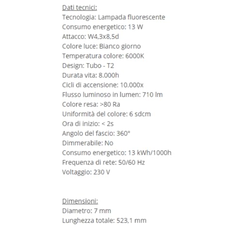 Illumination Store NEON T2 FM FLUORESCENTE 8W/860 6000K LUCE BIANCHISSIMA 32CM.