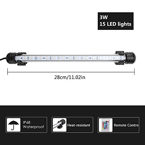 Illuminazione per Acquario LED Aquarium Light Colorato Sommergibile Luci Resistente Calore Telecomando Impermeabile Subacqueo Cristallo Barra Luce per Acqua Salata e Acqua Dolce (MF-15U EU Plug)
