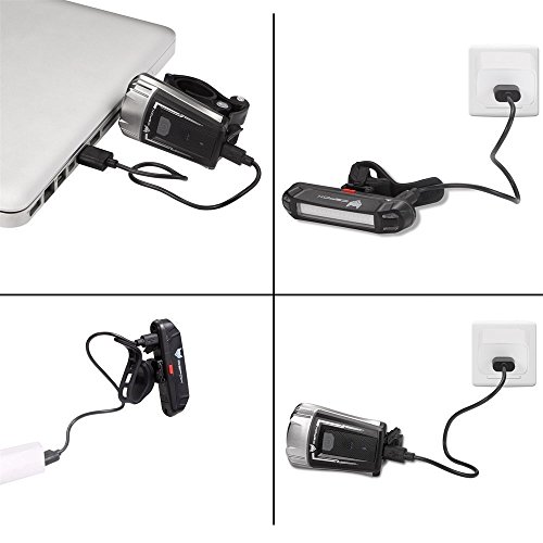 LED illuminazione bicicletta Set, Icefox STVZO Zug elassene USB ricaricabile impermeabile luce frontale luce posteriore per bicicletta con Super luminosi 4 modi luminosi (con Bell)