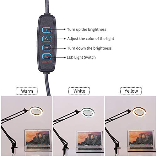 Illuminazione LED 5 X Lampada di ingrandimento con morsetto, vivavoce, lampada da scrivania, braccio orientabile, lampada USB, lente di ingrandimento 3 modalità, piccola/grande (opzionale)