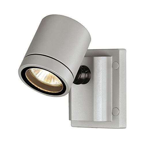 SLV Illuminazione per pareti, stradelli, ingressi, faretto LED plafone da Esterno, Lampada da Giardino / GU10 IP55 50W, MYRA Wall monofiamma Grigio Argento