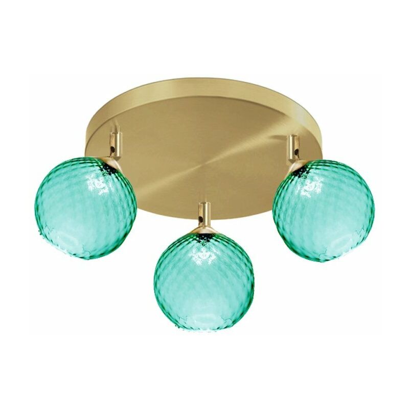 La plafoniera UNIVERSE 2719 PL3 è rifinita da simpatici vetri lavorati di colore verde. Ogni diffusore è provvisto di uno snodo che permette di orientare la luce secondo le proprie esigenze o semplicemente per dare un tocco di originalità all'ambiente. La finitura calda della base che permette il fissaggio a soffitto ed i vetri dalla colorazione originale trovano un perfetto connubio per arredare e illuminare qualsiasi ambiente, destinato ai grandi, ai piccoli sia per strutture private oppure pubbliche. Plafoniera faretti Due P UNIVERSE 2719 PL3 Lampada soffitto, 3 luci, faretti orientabili, E14 LED UNIVERSE 2719 PL3 ha tre sfere di diametro 11cm. La base è provvista di staffa per ancoraggio al soffitto tramite fisher di diametro 25cm per una sporgenza di diametro 1.5cm. Montatura in metallo ottone opaco. UNIVERSE 2719 PL3 è provvista di tre portalampade attacco E14 per lampadine a led escluse. Le lampadine a led possono essere scelte di ben tre tonalità di luce, calda (2700-3000°K)