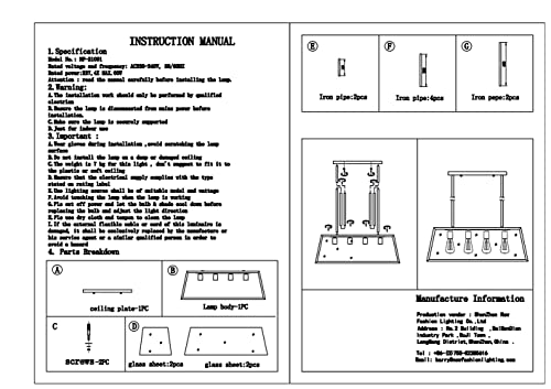 A1A9 Illuminazione a sospensione per isola da cucina con 4 lampadari, moderno lampadario industriale, cornice nera opaca con pannelli in vetro trasparente, plafoniere per sala da pranzo, fattoria