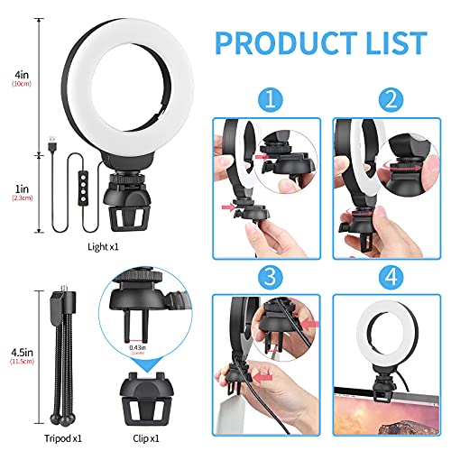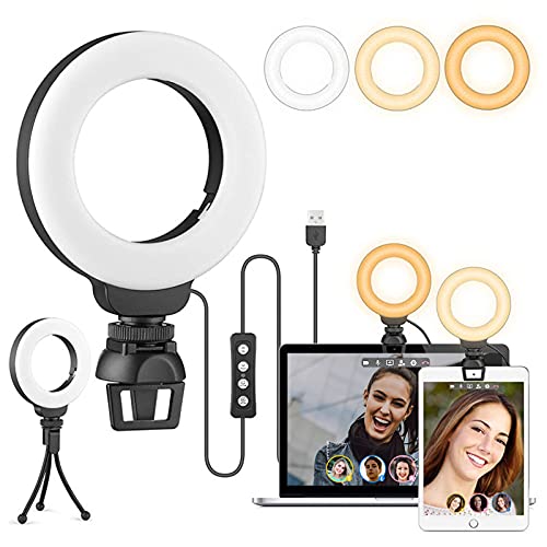 Illuminazione per videoconferenza, 4 pollici, per computer portatile/webcam, dimmerabile, con clip e supporto, luce per videoconferenza, per riunioni di zoom, fotografia, vlogging