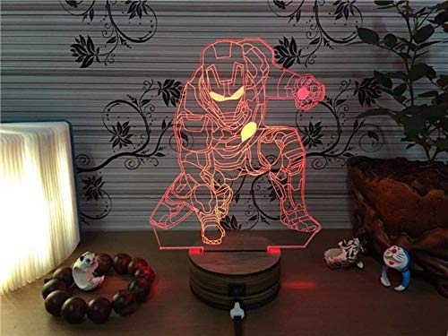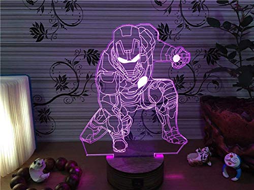 3D LED Illusion Light Iron Man Lights Batman Lights Miracle 7 Colori Telecomando Luce dimensionale Ottica Luci notturne Lampada da tavolo Atmosfera Decorazione Bambini Regali di compleanno