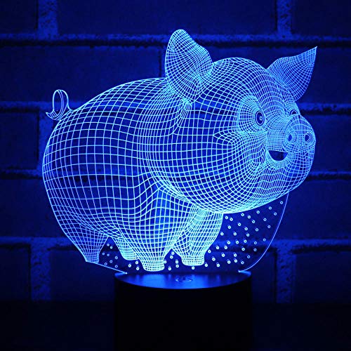 3D Illusion Night Light Luci notturne a LED Piccolo maiale con 7 colori di luce per la lampada della decorazione domestica Visualizzazione straordinaria Illusione ottica-maiale