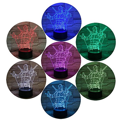 3D Illusione Lampada 3D Ottica DEADPOOL Lampada di Illuminazione Luce Notturna a Effetto Led 7 Touch Lamp Cambia Colore per Il Compleanno di Matrimonio Natale Valentine Amici per Bambini Regali Artis