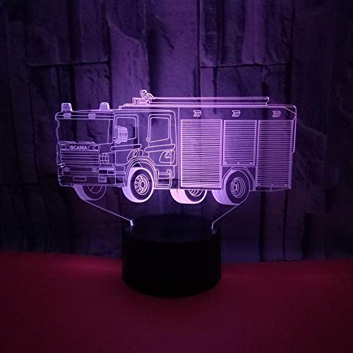 3D Illusione Ottica Luce Notturna Camion Dei Pompieri LED Light Notte Lighting Lampada 7 cambia colore touch interruttore con cavo USB, Decorazioni per la Casa Regali