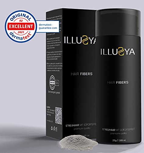 ILLUSYA - Fibre per Capelli, Hair Fibers, Polvere per Capelli fatto di cotone, Soluzione Professionale per la Perdita di Capelli per Donne e Uomini Prodotti Migliori 25g (grigio)