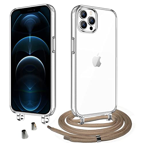ILovecover Cover Trasparente con Cordino per iPhone 12/12 Pro,Custodia con Regolabile Collana per iPhone 12/12 Pro, [Antiurto] [AntiGraffio] [Antiscivolo] Case con Laccio Tracolla, Cachi