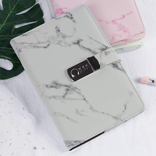 ILoveDeco Creative PU in Pelle Notebook Diario Taccuino con Segreta Password(Modello di Marmo), A5 Travel Notebook Organizzatore Diario con Serratura a Combinazione e Slot per Schede, 150x218mm