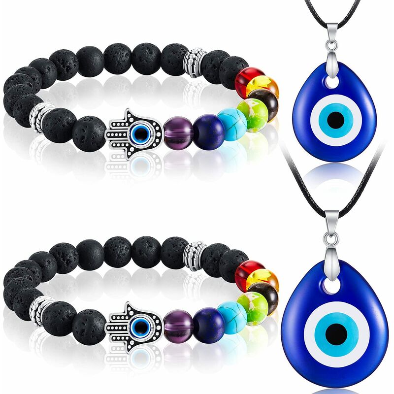 Si crede che se qualcuno si fissa/si osserva con gelosia o gelosia, porterà sfortuna. La forma di protezione più popolare è indossare e mostrare l'Evil Eye Amulet, che viene indossato per proteggere te e i tuoi cari da sguardi gelosi e risentiti. Può essere abbinato a tutto per dare il tuo vestito un'eleganza super chic e sobria. Perfetto per la cena, con qualsiasi top, il regalo perfetto per lei o per te. Gioielli personalizzati moderni, minimali e disinvolti! Accessori personali intagliati a mano, gioielli delicati e combinazioni a strati per un look personale perfetto! Specifiche: Set da 4 pezzi (collana goccia d'acqua*2+braccialetto occhio del diavolo*2)