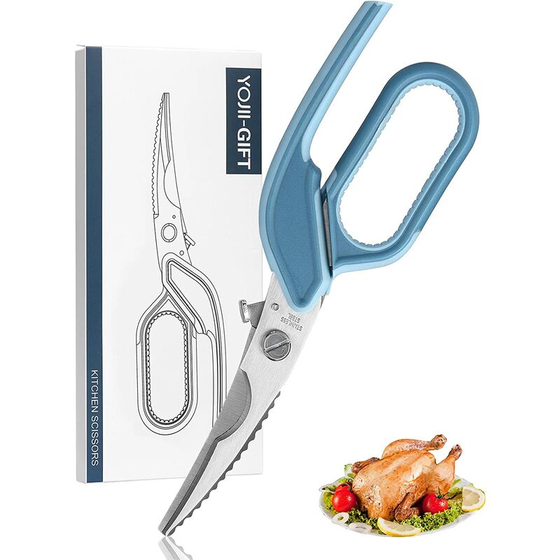 FACILE DA USARE, FACILE DA PULIRE Se stai cercando un paio di forbici da cucina in grado di gestire un taglio serio, allora devi dare un'occhiata alle nostre forbici per pollame per impieghi gravosi in acciaio inossidabile. Sono perfetti per tagliare ossa, carne e pollo. Sono anche ottimi per tagliare grasso e tendini. Le forbici per pollame sono dotate di una comoda impugnatura morbida, che le rende facili da usare. Sono anche lavabili in lavastoviglie, il che le rende facili da pulire. FORBICI DA CUCINA TUTTO IN UNO Progettate per tagliare le ossa del pollame, rendendo facile disossare un pollo o un tacchino. Funzionano bene anche per tagliare pesce e carne, oltre alle verdure. IDEALI PER LA CUCINA MODERNA Queste forbici da cucina sono un must per la cucina moderna. Perché renderlo più difficile di quanto dovrebbe essere? Rendi il taglio mentre cucini facile come una torta, senza dover usare un tagliere e senza la frustrazione di usare forbici di bassa qualità. Taglia i pezzi di