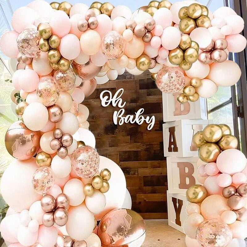 141 PZ Kit ghirlanda di palloncini ad arco che include: UNA CATENA DI PALLONCINI DA 16,5 piedi, UN ROTOLO di 100 PALLONCINI punti. Palloncini in oro rosa da 5 pollici 30 pezzi, palloncini in oro da 5 pollici 30 pezzi, palloncini rosa da 10 pollici 35 pezzi, palloncini color pesca da 10 pollici 30 pezzi, palloncini in lattice coriandoli oro rosa trasparenti da 12 pollici 10 pezzi, palloncini color pesca da 18 pollici 2 pezzi, oro da 18 pollici 4D palloncini in film di alluminio 2 PZ, FACILE DA ASSEMBLARE: Nessun elio NECESSARIO, basta gonfiare i palloncini e fissarli alla striscia di palloncini. La ghirlanda ad arco di palloncini appesa sembra stupenda, perfetta per BABY SHOWER, DECORAZIONI DI SFONDO PER FESTA DI COMPLEANNO, ADIDAZZA DI SPOSO, MATRIMONIO, GIOCHI DI FESTE ecc. DESIGN SPECIALE: Tutti i palloncini sono realizzati in lattice naturale e gli altri accessori per palloncini sono realizzati in materiale PP. Tutti i materiali sono di alta qualità e SICUREZZA, MOLTO DUREVOLE