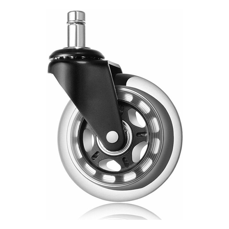 L'intera staffa e le parti interne sono realizzate in acciaio di alta qualità, garantendo anni di rotolamento facile e durata. [Gomma morbida] Questo materiale per la ruota dell'anello di presa è realizzato in poliuretano morbido di alta qualità, che ha un'elevata resistenza meccanica, resistenza all'usura, assorbimento degli urti e bassa rumorosità. Una buona base in gomma PU elastica ha anche un'azione extra repellente allo sporco e autopulente [Sicurezza del pavimento] Rotola dolcemente e silenziosamente su qualsiasi pavimento in legno duro, piastrella, legno, moquette, cemento senza graffi, adatto a tutti i tipi di piani. Bassa resistenza, si prega di prestare attenzione alla sicurezza [Facile da installare] Basta estrarre la vecchia ruota e premere questa popolare ruota a stelo, universalmente applicabile a tutti i tipi di sedili. Specifiche: Il diametro della ruota è di circa 2 pollici