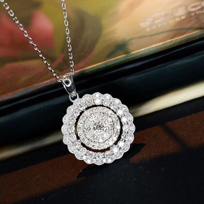 Splendido ciondolo collana placcato argento da donna con zirconi cubici gioielli da sposa. Colore pietra principale: Metallo bianco: Pietra principale placcata argento: Tipo di zirconia cubica: Forma della pietra principale della collana: Stile rotondo: Tema di fascino: Bellezza