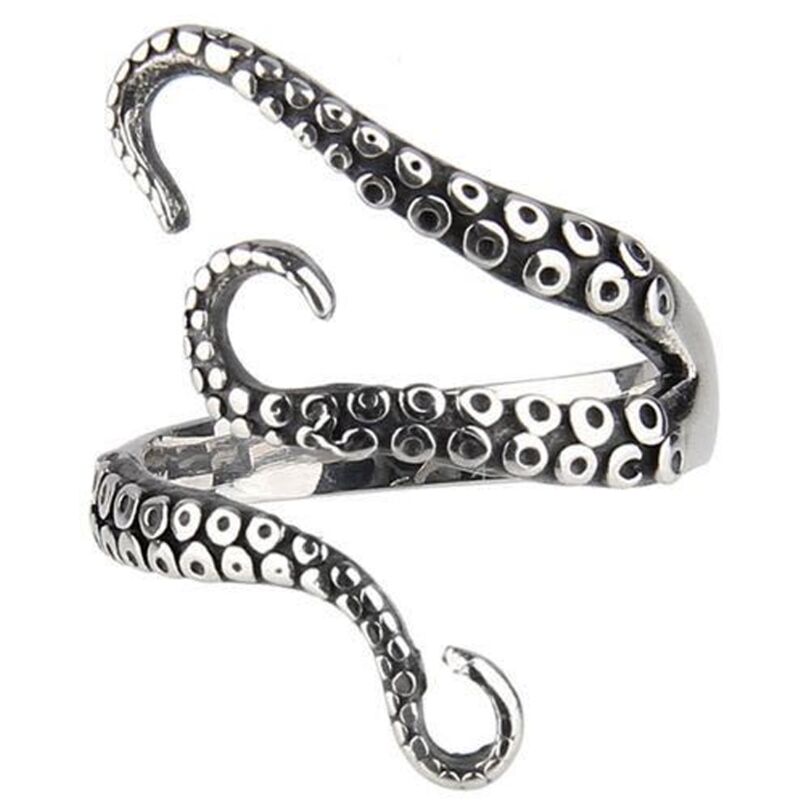 Taglia unica. Facile da piegare: basta piegarlo per adattarsi comodamente al dito. Adatto sia a uomini che a donne. Regalo eccellente: è una buona scelta regalo per la tua famiglia, i tuoi amici e i tuoi colleghi. Design: caratterizzato da un design punk unico. La forma del calamaro del polpo mette in risalto e mette in risalto un'anima straordinaria.