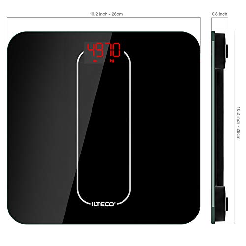 ILTECO Bascola da bagno intelligente, bilancia di precisione digitale con tecnologia Bluetooth connessione Android e iOS, display LCD, tecnologia Handsfree | colore nero