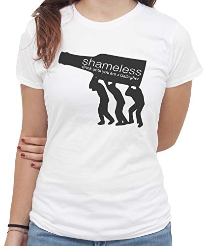 IMage T-Shirt Bottiglia Drink Like a Gallagher Bianca - M Donna