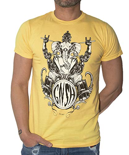 IMage T-Shirt Ganesh Batterista Yoga - Divertente Gialla - L Uomo