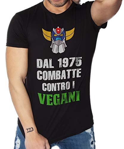 IMage T-Shirt Robot Contro I Vegani - Divertente Nera - M Uomo
