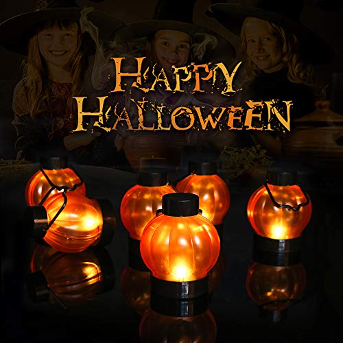 IMAGE Luci di zucca a LED 12pcs Mini Lanterna da Appeso Arancione Tealights con Fiamma tremolante per Halloween Festa di Natale Decorazione della Casa