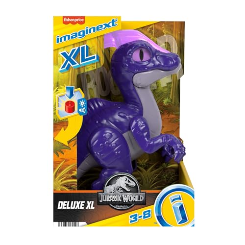 Imaginext Jurassic World - Parasaurolofo Dinosauro XL, dinosauro extra-large con luci e suoni, alto 25+ cm, mascella mobile e occhi e corno si illuminano, giocattolo per bambini, 3+ anni, HML43