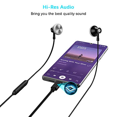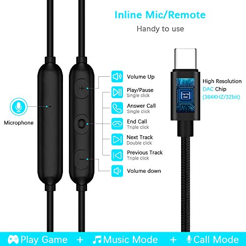 Microfono integrato e controllo del volume: il microfono integrato delle cuffie USB C può trasmettere una voce ad alta fedeltà. I pulsanti di controllo del volume consentono di riprodurre / mettere in pausa i brani, saltare il brano successivo / precedente senza sollevare il telefono.