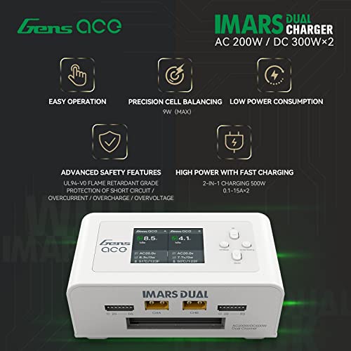 【Prodotto】GensAce Imars Dual Smart Balance Charger, capace di velocità di ricarica di 15 A, versatilità di tensione mondiale 100 V-240 V, con alimentazione CA 200 W CC 300 W * 2. ideale per il tuo FPV e batterie per auto