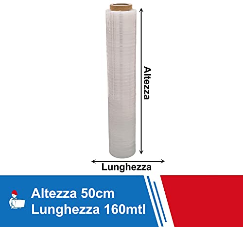Rotolo di film estensibile di altezza 50 cm e lunghezza 160 metri, in materiale stretch.